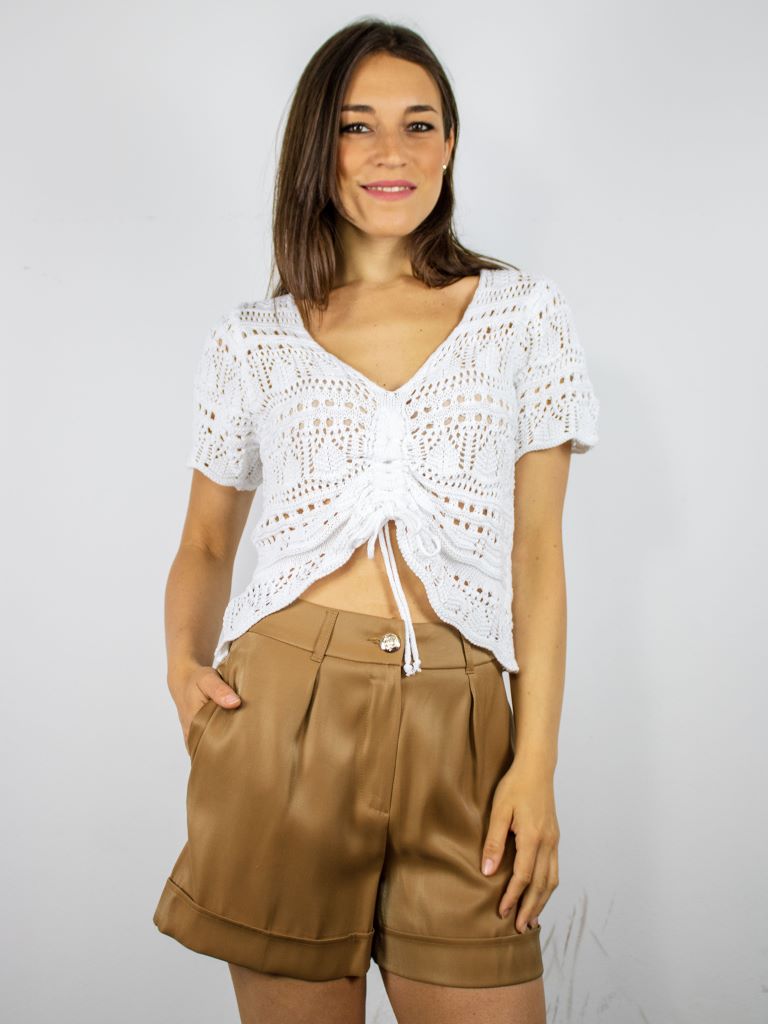 Bermuda taglio dritto con tasche anteriori. Pinces frontali