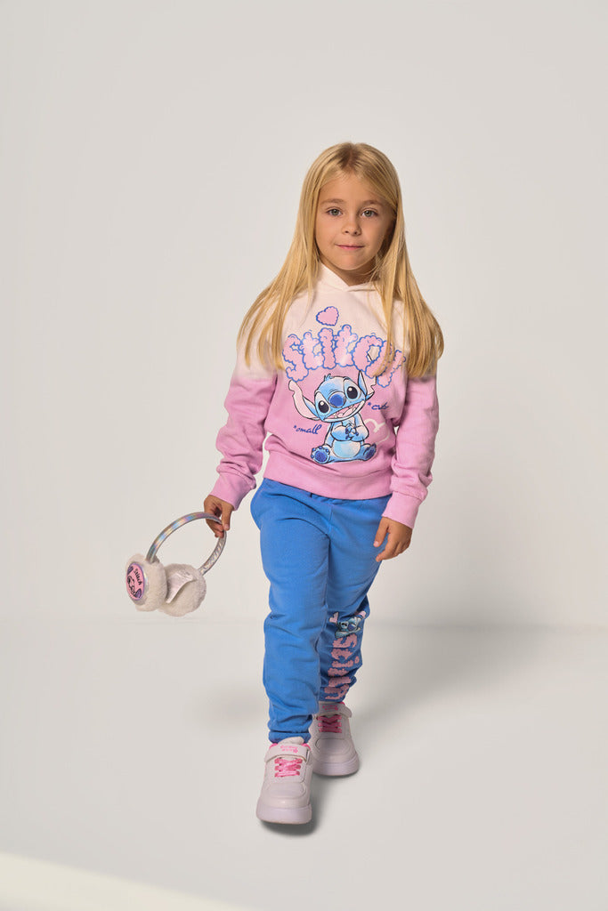 DESCRIZIONE: Felpa con cappuccio in cotone, dedicata a Stitch. Presenta una sfumatura rosa e bianco, stampa frontale con il personaggio Disney e scritta “Small & Cute”. Il modello è comodo e caldo, ideale per la scuola o i momenti di gioco. Codice prodotto: 259144