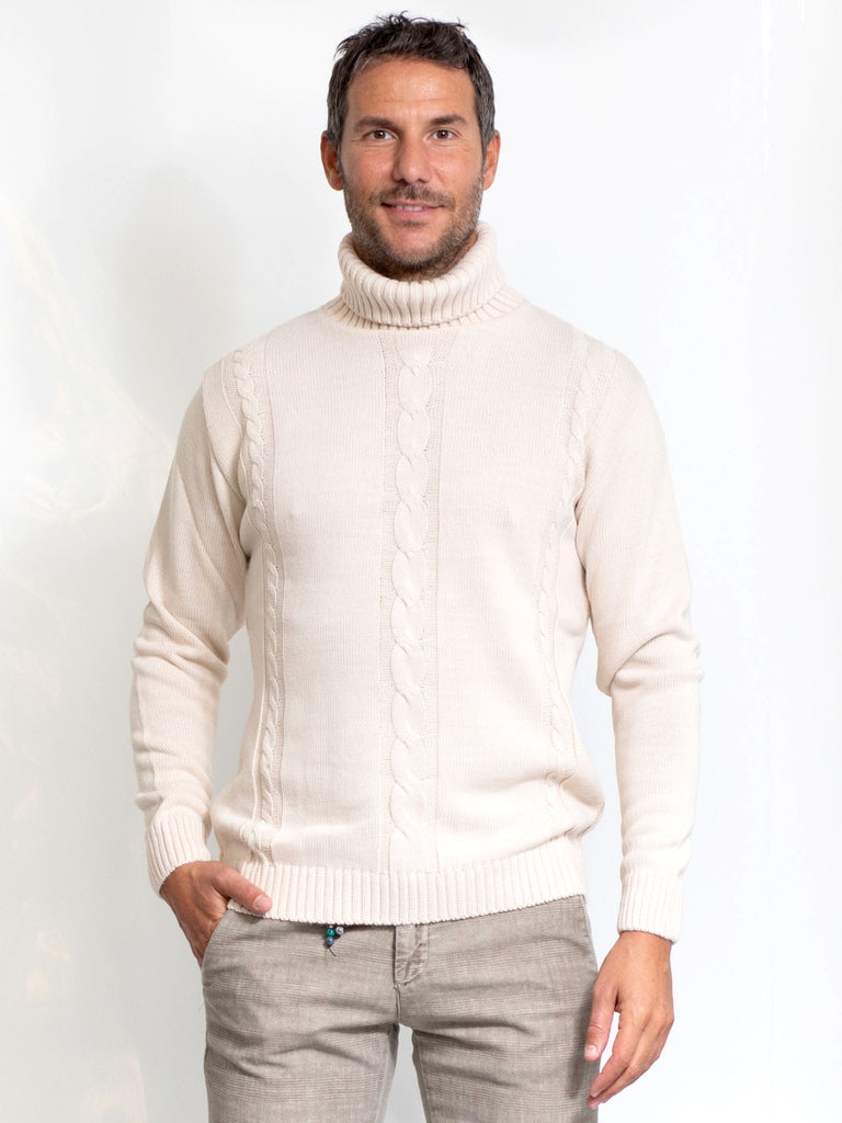 DESCRIZIONE: Maglione dallo stile tradizionale lavorato a treccia. Con collo alto in misto lana, un dolcevita per arricchire un look casual e raffinato. composizione: 70% acrilico, 30% lana codice prodotto: 253768