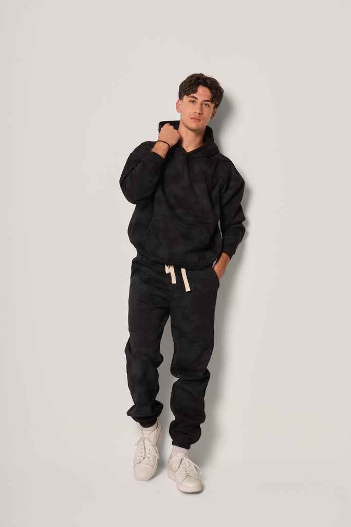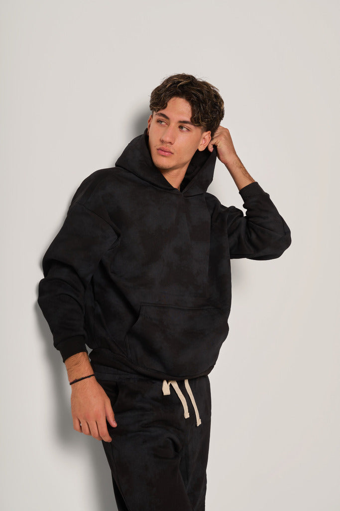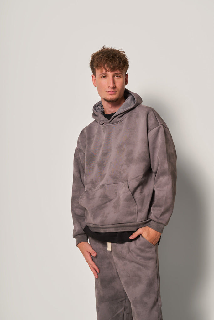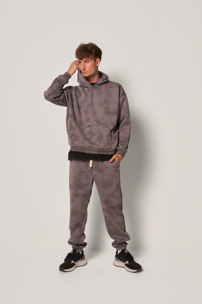 DESCRIZIONE: Tuta in felpa dallo stile contemporaneo con effetto tie-dye sfumato, ideale per un look casual ma di tendenza. Il completo è composto da felpa con cappuccio e tasca a marsupio e pantaloni con coulisse e fondo elasticizzato. Codice prodotto: 260970